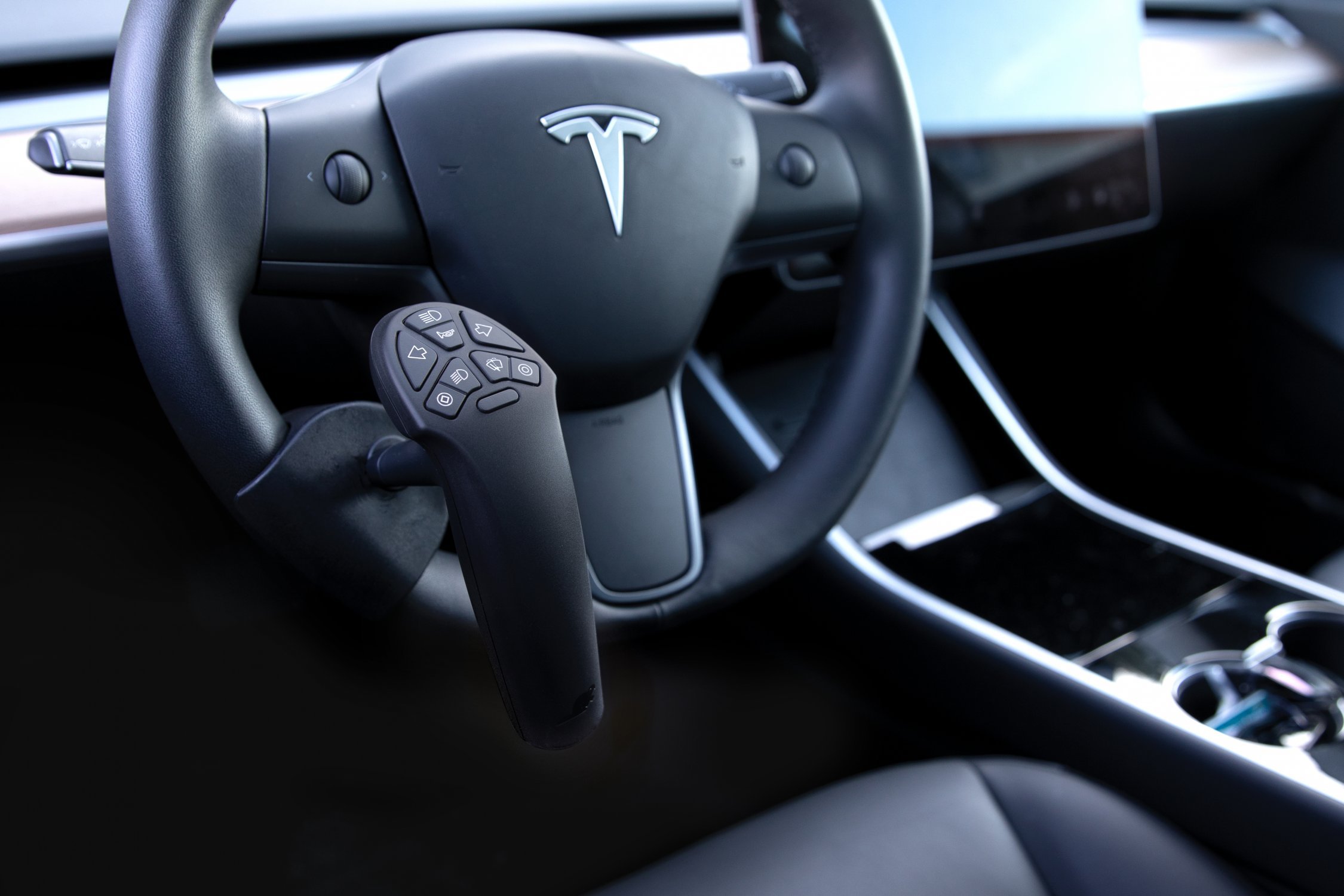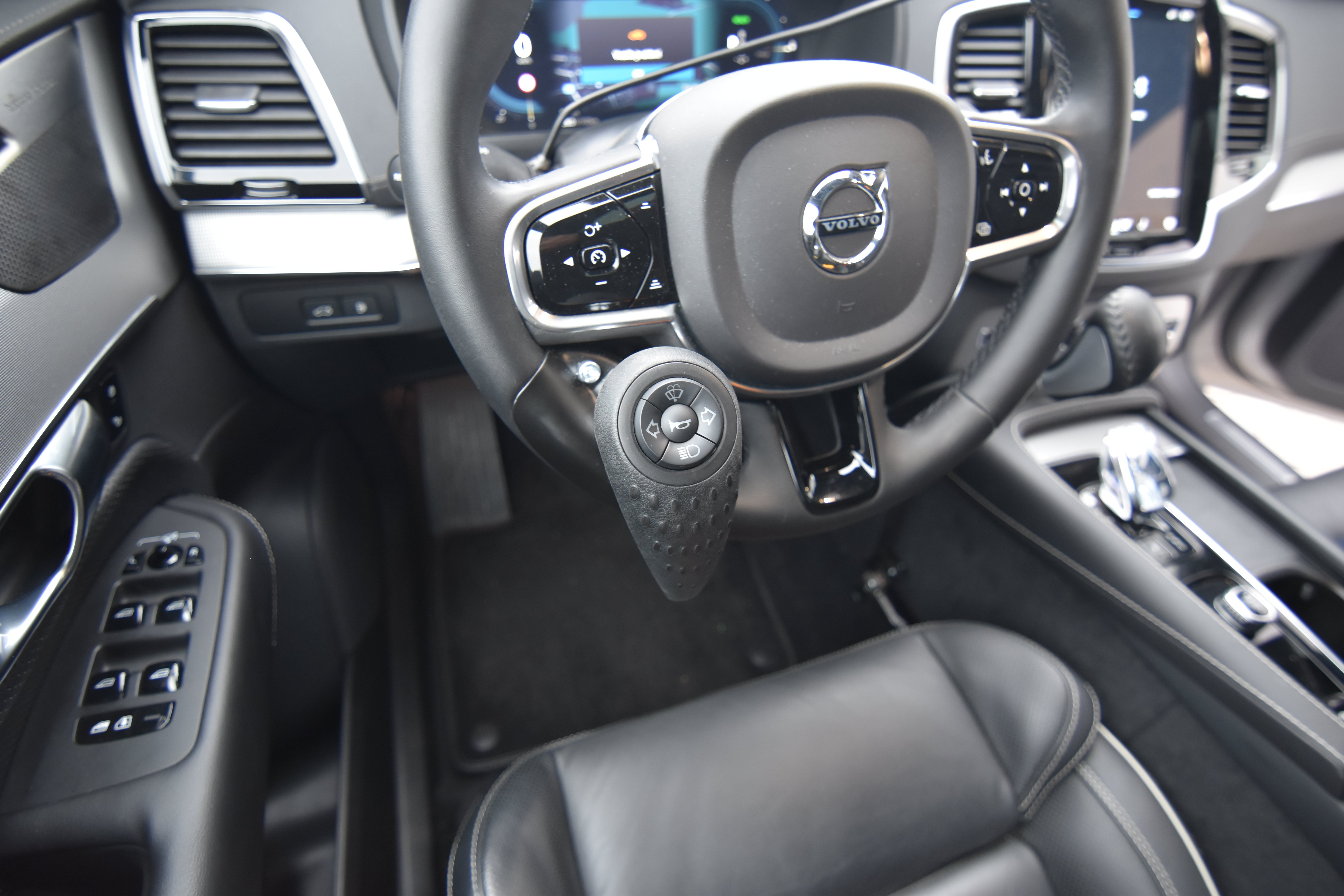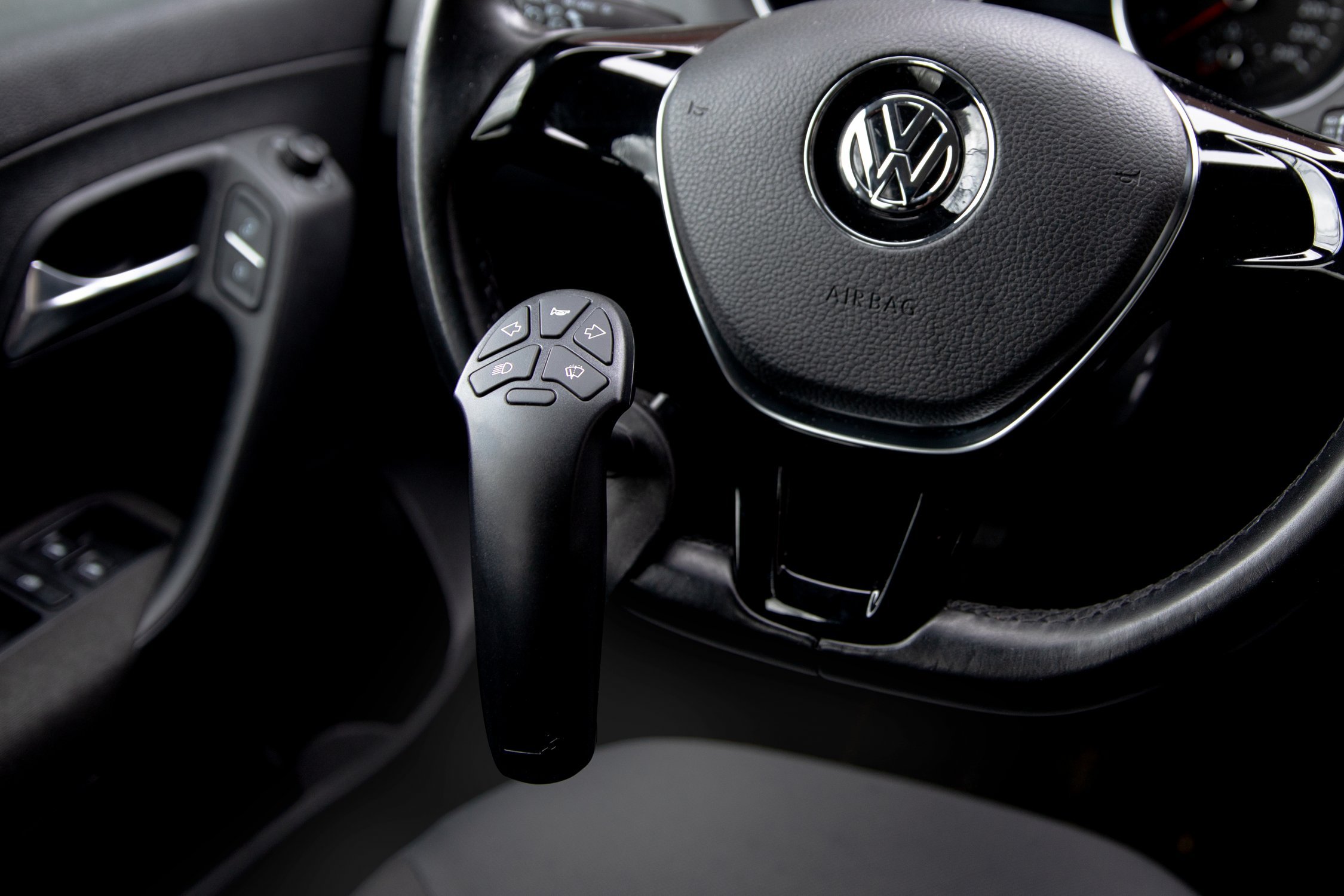 Usually a knob on the steering wheel is used with various keypad arranged. A touch display with touch-sensitive functions can also be used.